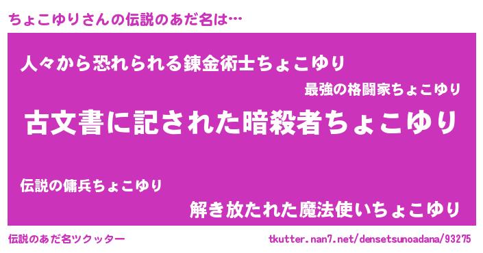 | 男性向けラノベタイトル風あだ名 | 『Re:ちょこゆりから始める異世界生活』 |