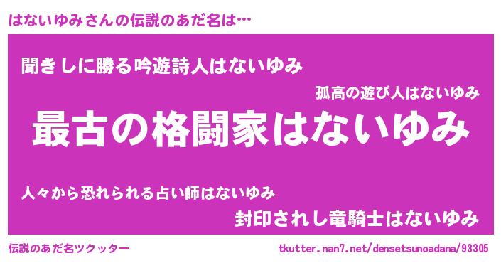| 意味不明あだ名 | 『はないゆみフォーエバー』 |
