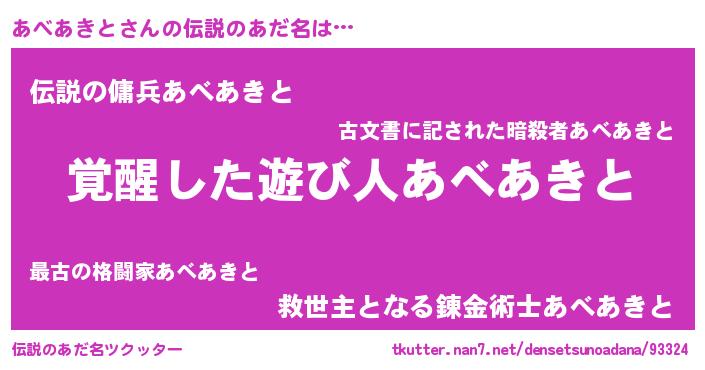 | 男性向けラノベタイトル風あだ名 | 『あべあきとの嫁は女の子じゃないと思った?』 |