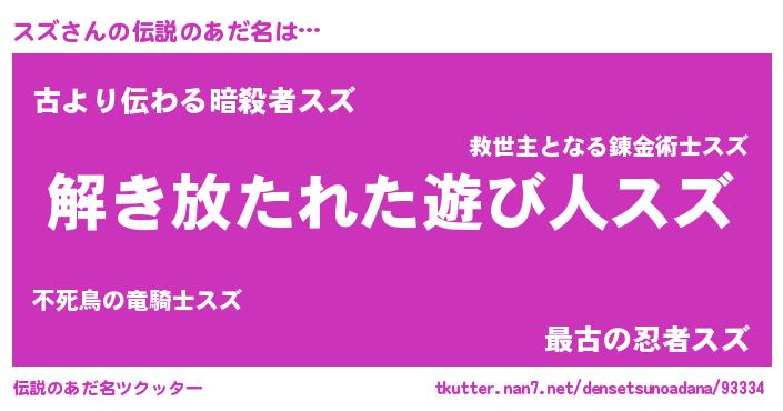 | 意味不明あだ名 | 『とにかく怪しいスズ』『永久保存スズ』 |