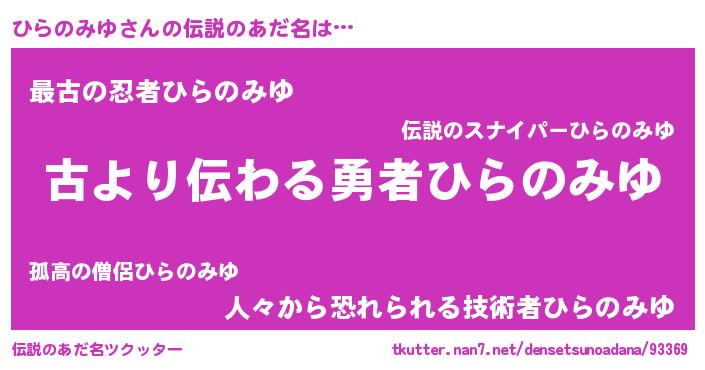 | 意味不明あだ名 | 『永久保存ひらのみゆ』『自称ひらのみゆ』 |