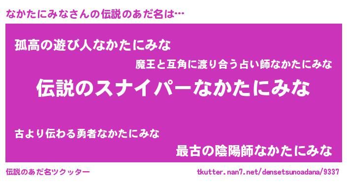 | ヒーロー風カッコイイあだ名 | 『スーパーナカタニミナ』『魔戒騎士ナカ』 |