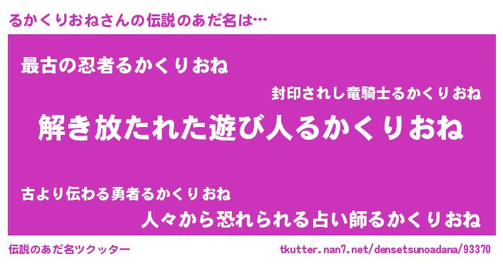 | 胡散臭い通販商品みたいなあだ名 | 『世界中を虜にした世界で10本だけ現存している希少なブランデー…その名も「るかくりおね」』 |
