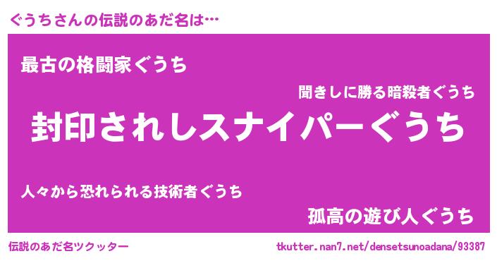 | 胡散臭い通販商品みたいなあだ名 | 『億万長者になれる霊験あらたかなお札…その名も「ぐうち」』 |
