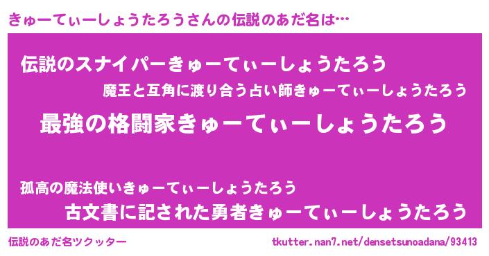 | 男性向けラノベタイトル風あだ名 | 『きゅーてぃーしょうたろう~年齢イコール彼女いない歴の魔法使い~』 |