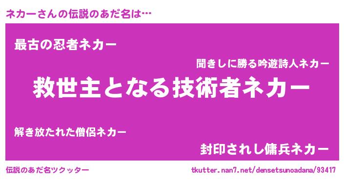| 意味不明あだ名 | 『住所不定無職ネカー(11歳)』『自称ネカー』 |