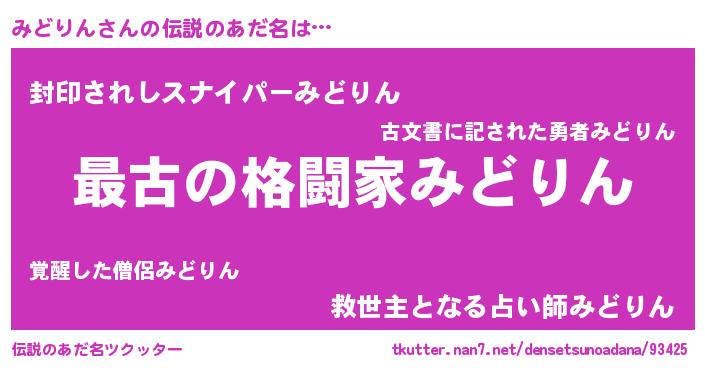 | ヒーロー風カッコイイあだ名 | 『最強戦士ミドリン』『スーパーミドリン』 |