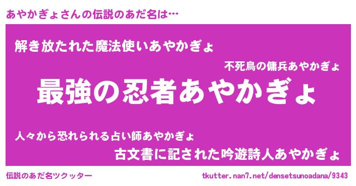 | ポケモン風あだ名 | 『アヤカダネ』『ヒアヤカギョ』 |