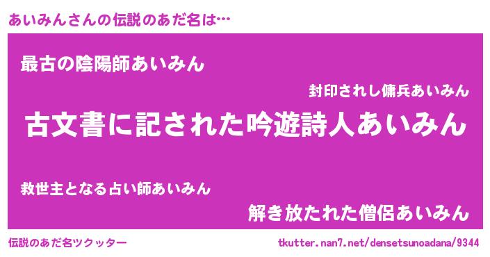 | 胡散臭い通販商品みたいなあだ名 | 『あなたにだけ特別に提供する100年もののヴィンテージワイン…その名も「あいみん」』 |