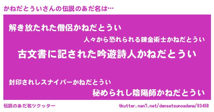 | 欧米人風あだ名 | 『かねだとうい・ステッグマイヤー』 |