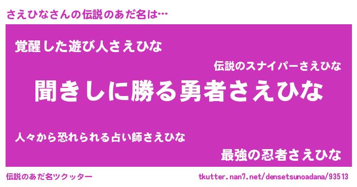 | 男性向けラノベタイトル風あだ名 | 『サエヒナスレイヤー』 |