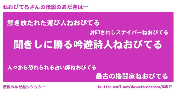 | 意味不明あだ名 | 『自称ねおびてる』『永久保存ねおびてる』 |