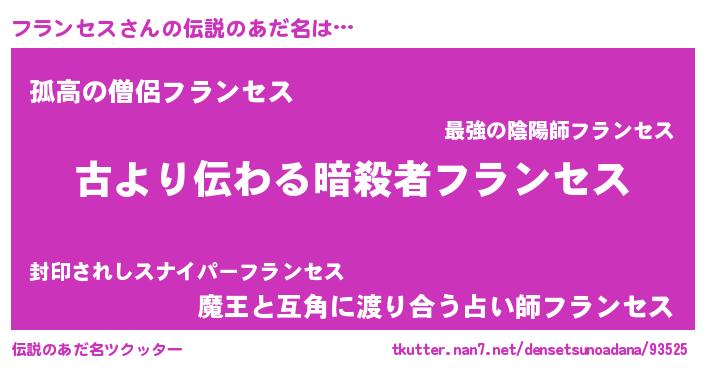 | 意味不明あだ名 | 『自称フランセス』『永久保存フランセス』 |