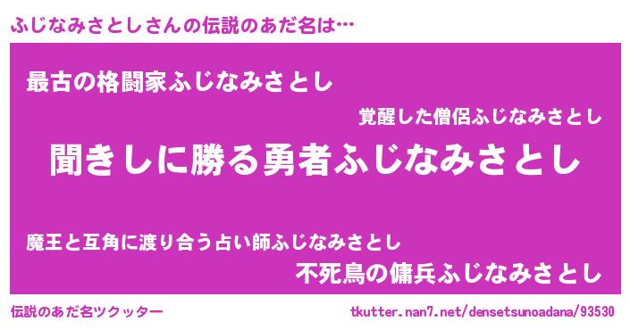 | ヒーロー風カッコイイあだ名 | 『ネオフジナミサトシ』『仮面フジダー』 |