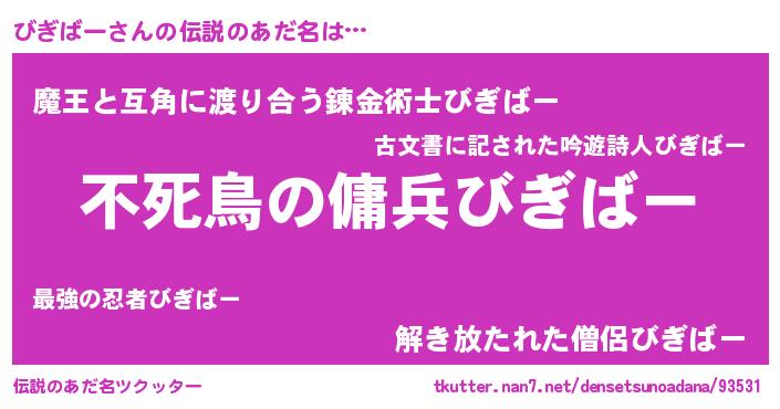| 女子向けラノベタイトル風あだ名 | 『びぎばー姫と円卓の騎士』 |