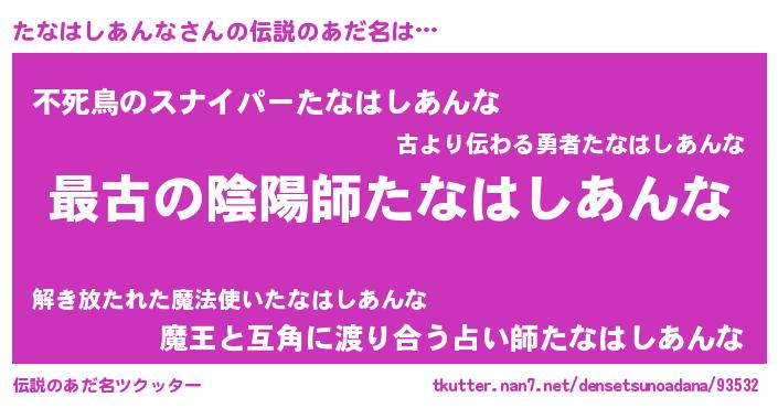 | ポケモン風あだ名 | 『タナハダネ』『ターナイ』 |