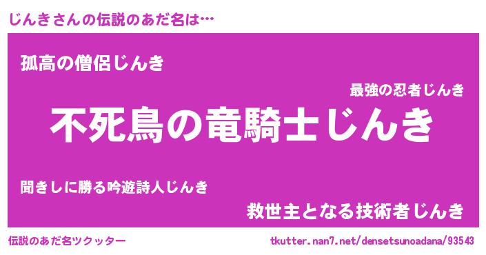 | 女子向けラノベタイトル風あだ名 | 『じんき姫と円卓の騎士』 |