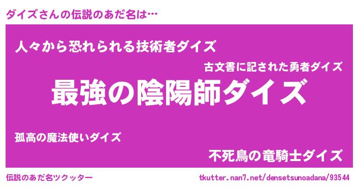 | ヒーロー風カッコイイあだ名 | 『ウルトラダイズマン』『スーパーダイズ』 |