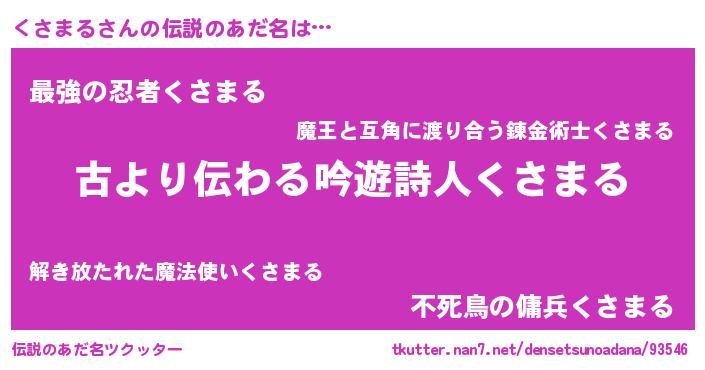 | 意味不明あだ名 | 『自称くさまる』『永久保存くさまる』 |