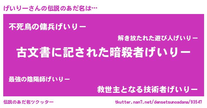 | ヘコむあだ名 | 『げいりー(笑)』『げいにゅー』 |