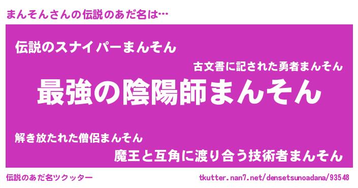 | ヒーロー風カッコイイあだ名 | 『ウルトラまんそんマン』『仮面マンダー』 |