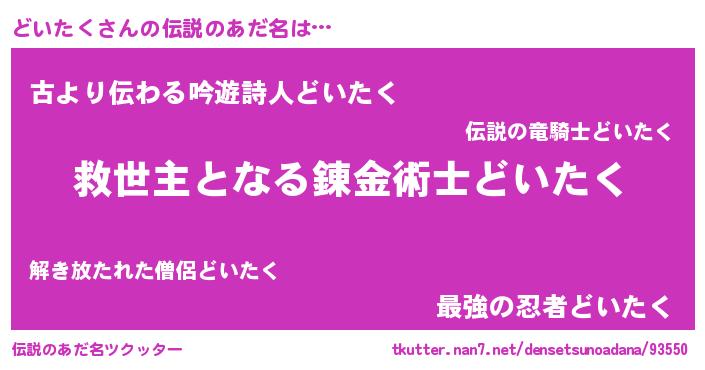 | ヒーロー風カッコイイあだ名 | 『天空の使者どいたく』『ネオドイタク』 |