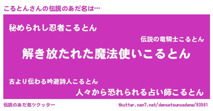 | ヘコむあだ名 | 『こるを』『つくし』『こるっふぃ~』 |