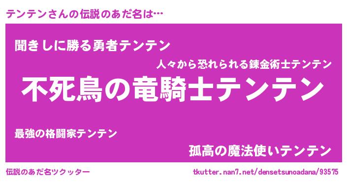 | 男性向けラノベタイトル風あだ名 | 『テンテンの憂鬱』 |