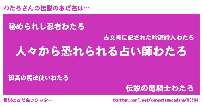 | 意味不明あだ名 | 『自称わたろ』『なめこ科わたろ属』 |