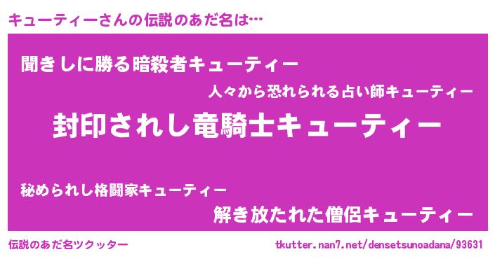 | ヒーロー風カッコイイあだ名 | 『スーパーキューティー』『仮面キュダー』 |