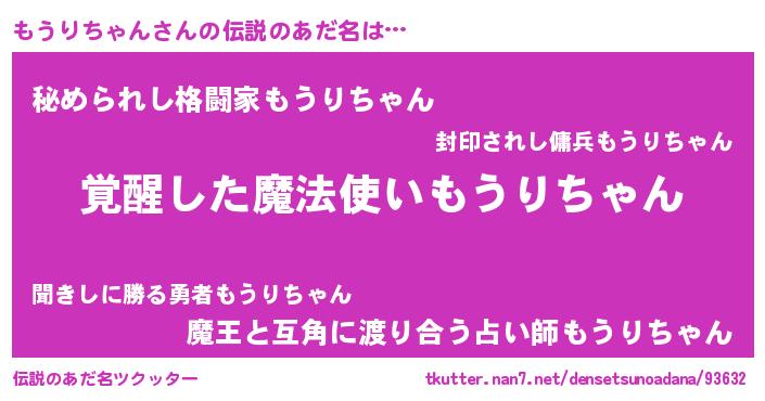 | 男性向けラノベタイトル風あだ名 | 『もうりちゃんの嫁は女の子じゃないと思った?』 |