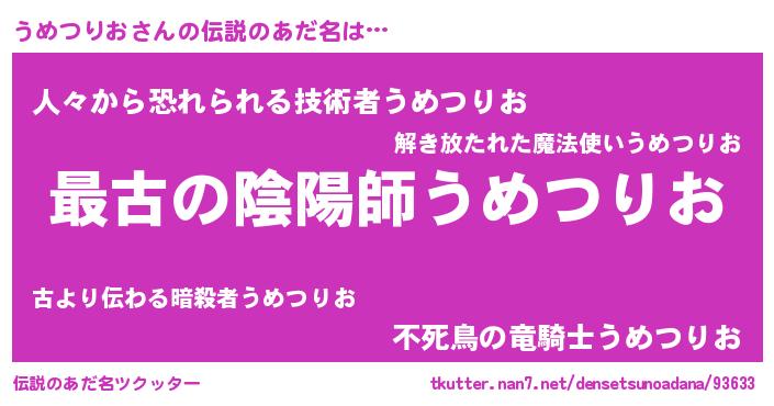 | 意味不明あだ名 | 『うめつりおフォーエバー』 |