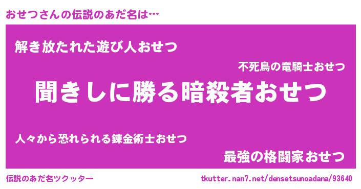 | ヒーロー風カッコイイあだ名 | 『ネオオセツ』『幻影騎士オセ』 |
