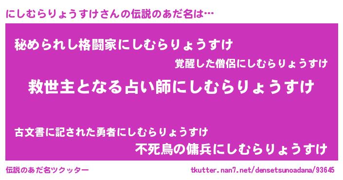 | 男性向けラノベタイトル風あだ名 | 『ノーゲーム・ノーニシムラリョウスケ』 |