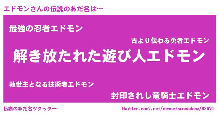 | ヒーロー風カッコイイあだ名 | 『魔戒騎士エド』『仮面エドダー』 |