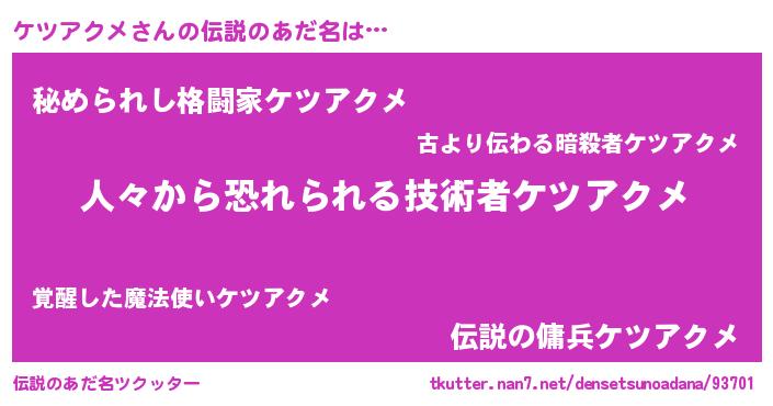 | ヒーロー風カッコイイあだ名 | 『仮面ケツダー』『天空の使者ケツアクメ』 |