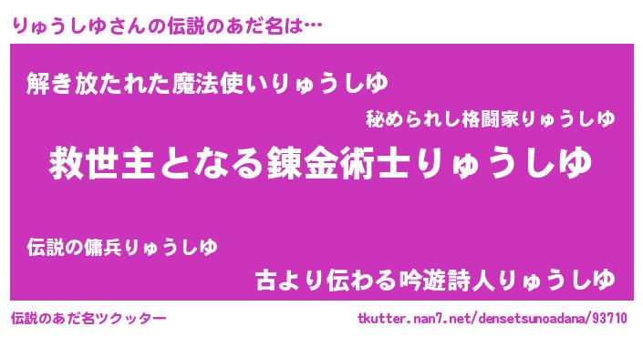 | 胡散臭い通販商品みたいなあだ名 | 『あなたにだけ特別に提供する世界で10本だけ現存している希少なブランデー…その名も「りゅうしゆ」』 |