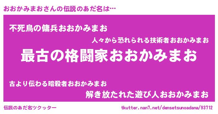 | 男性向けラノベタイトル風あだ名 | 『転生したらおおかみまおだった件』 |