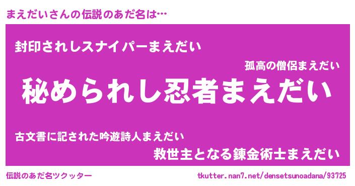 | ヒーロー風カッコイイあだ名 | 『超時空戦士マエダイ』『仮面マエダー』 |