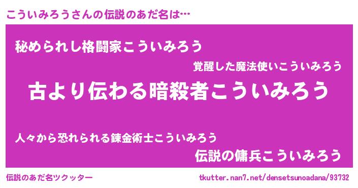| ヒーロー風カッコイイあだ名 | 『仮面コウダー』『ネオコウイミロウ』 |
