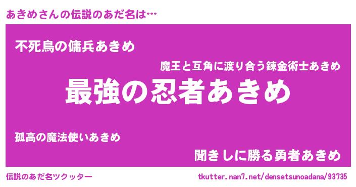 | ヒーロー風カッコイイあだ名 | 『仮面アキダー』『ウルトラあきめマン』 |