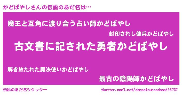 | 意味不明あだ名 | 『永久保存かどばやし』『自称かどばやし』 |