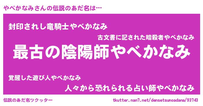 | ファンタジー風あだ名 | 『エターナルヤベカナミー』『ヤベフェル』 |