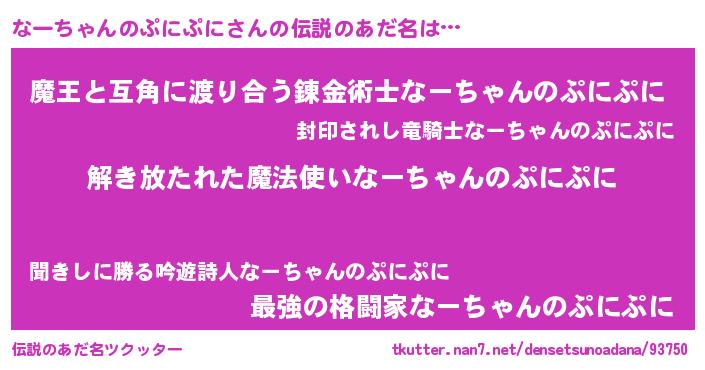 | 胡散臭い通販商品みたいなあだ名 | 『伝統あるサプリメント…その名も「なーちゃんのぷにぷに」』 |