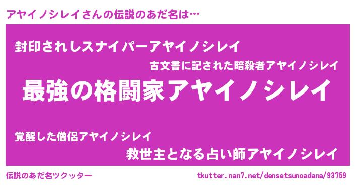 | ファンタジー風あだ名 | 『エターナルアヤイノシレイー』 |