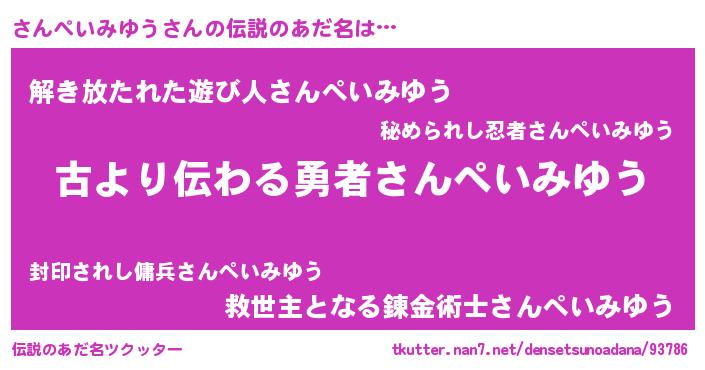 | ヒーロー風カッコイイあだ名 | 『仮面サンダー』『ネオサンペイミユウ』 |