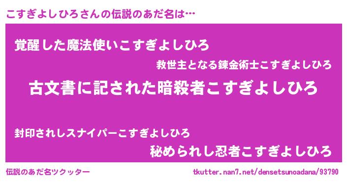 | 意味不明あだ名 | 『住所不定無職こすぎよしひろ(14歳)』 |