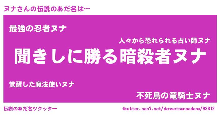 | ヘコむあだ名 | 『ヌナ(笑)』『レバニラ』『ヌナにー』 |