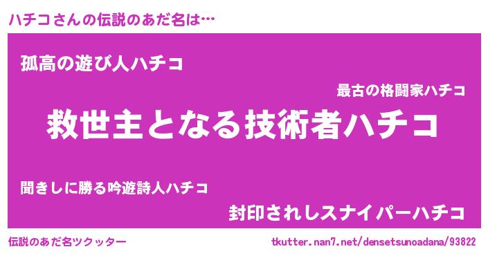 | 意味不明あだ名 | 『住所不定無職ハチコ(3歳)』『自称ハチコ』 |