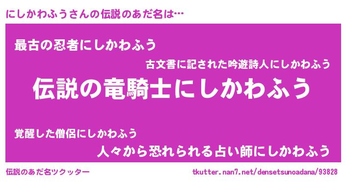 | ヒーロー風カッコイイあだ名 | 『仮面ニシダー』『スーパーニシカワフウ』 |